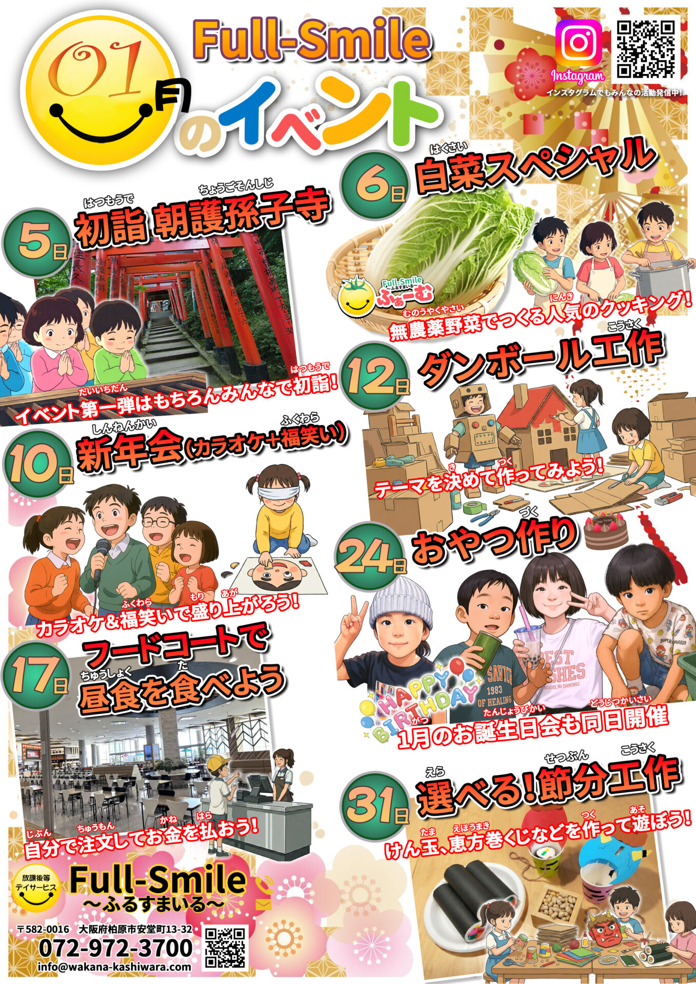 郵送にて保護者様にお送り致します、2026年1月の予定表を先にアップロード致しました。